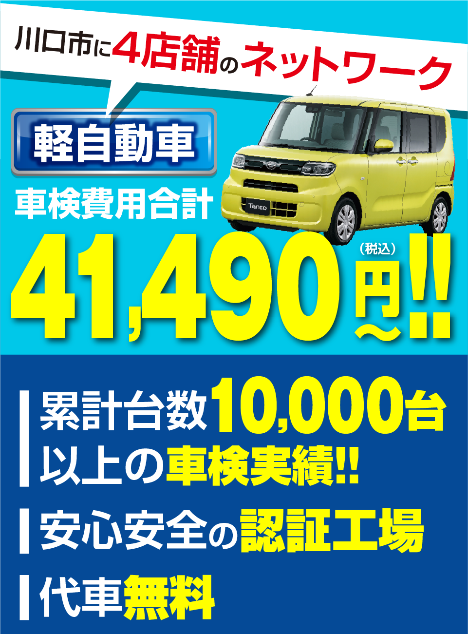| 車検基本料 | ¥9,900 | ¥9,900 | ¥9,900 | ¥9,900 |