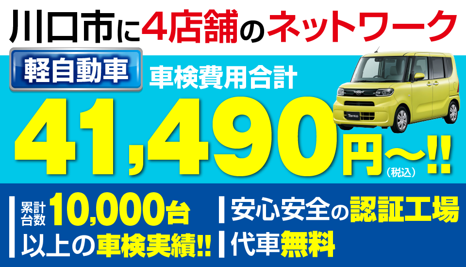| 車検総額 | ¥41,490 | ¥51,400 | ¥59,600 | ¥67,900 |